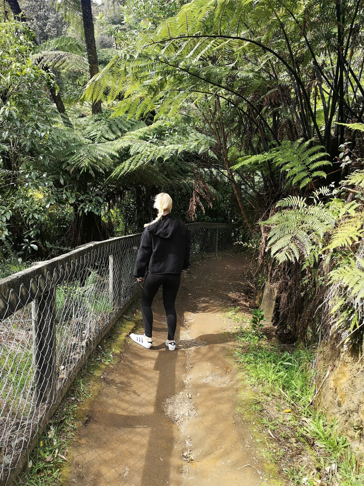 Wir zogen unsere Regenjacken an (bzw. Nur Nina - da ich keine hatte. Thema: Mama sagt, mein Backpack ist sonst zu voll. Ich solle eine Regenjacke in Neuseeland kaufen, ich dafür aber zu geizig bin.) Und zogen uns natürlich Wanderschuhe an.