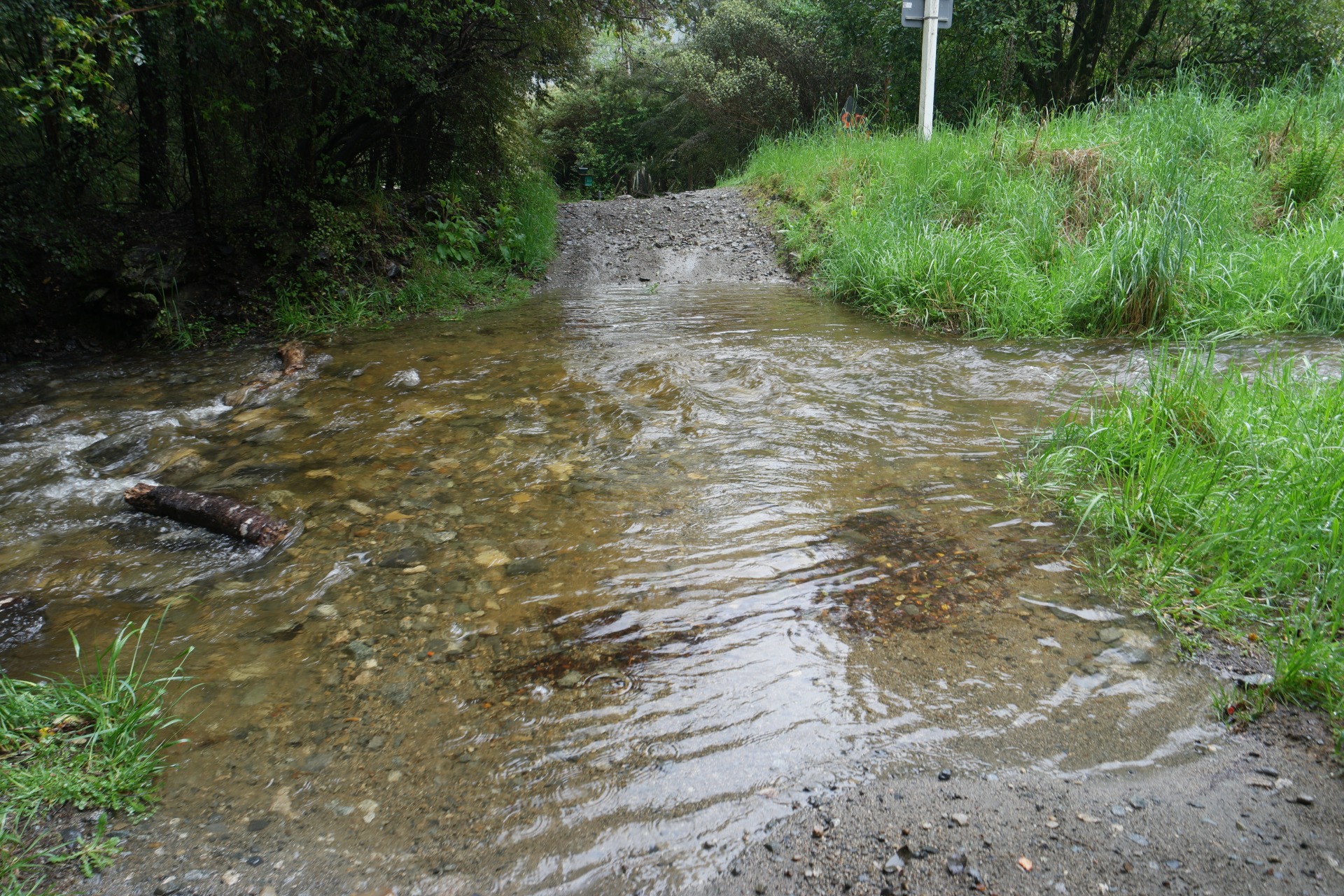 Mit dem Ergebnis, dass unser Weg von einem Fluss, der durch den starken Regen entstanden ist, überflutet wurde. (Siehe Bild oben links)